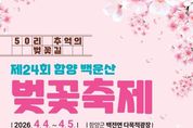코리아타임뉴스 경남취재본부 | 함양군은 ‘제24회 함양 백운산 벚꽃축제’가 오는 4월 4일부터 5일까지 이틀간 백전면 다목적광장 일원에서 개최된다고 밝혔다. 백전면 문화체육회(회장 황원하)가 주최·주관하는 이번 축제는 아름다운 50리 벚꽃길을 배경으로 각종 체험행사, 먹거리와 함께 벚꽃 전국트롯가요제 등 다양한 프로그램을 마련해 상춘객을 맞이할 예정이다. 백전면 50리 벚꽃길은 수동면에서 백전면으로 이어지는 구간으로, 30여 년 전 함양 출신의 고(故) 박병헌 재일거류민단장이 기증한 벚나무가 지금까지 보전 관리되어 함양군 봄 명소로 자리 잡고 있다. 축제 첫날인 4일에는 벚꽃축제 성공기원제를 시작으로 오전 11시 개막식과 축하공연, 주민자치프로그램 공연, 면민 노래자랑 등 각종 프로그램이 진행된다. 축제 둘째 날인 5일에는 마을 대항 민속놀이, 제3회 백운산 벚꽃 전국트롯가요제, 지역 가수 공연 등이 진행될 예정이며, 축제 기간 벚꽃길 야간조명 등 다양한 볼거리를 통해 방문객 체류 시간을 늘릴 계획이다. 특히, 올해로 3회째를 맞는 ‘함양 백운산 벚꽃 전국트롯가요제’가 축제 기간 개최되