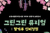 코리아타임뉴스 이아름 기자 | 경기도 수원시립미술관은 자연과의 관계를 성찰하고 생태적 가치를 체험하는 참여형 교육전시 《그린그린 뮤지엄 : 별가루 신비정원》을 3월 24일부터 7월 24일까지 수원시립만석전시관에서 개최한다. 《그린그린 뮤지엄》은‘자연과의 눈맞춤’을 주제로 자연의 초록(Green) 빛을 예술로 그려낸다(Drawing)는 중의적 의미를 담아 연간으로 운영된다. 2026년 상ㆍ하반기 두 차례에 걸쳐 운영되며, 상반기 1부 전시는《그린그린 뮤지엄: 별가루 신비정원》에 이어 하반기에는 새로운 주제의 2부 전시가 이어질 예정이다. 이번 전시는 회화 작가 진영(b.1982)과 설치, 사운드 등 융복합 작업을 선보이는 팀 아르테코(est.2023, 설혜린, 이소희, 김창수, 드림스케이프)가 참여한다. 전시는 총 20점의 작품으로 구성되며, 두 개의 섹션을 통해 자연을 감각하고 사유하는 경험을 제공한다. 첫 번째 섹션 '어두운 밤, 숲의 이야기'는 앵무새를 매개로 숲의 서사를 그려내는 작가 진영의 작품을 소개한다. 클로드 모네의 '수련이 있는 연'을 오마주한 작업 '사이 02'(2024)는 도시 속 유일한 쉼의