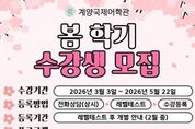 코리아타임뉴스 사회팀 | 인천 계양국제어학관이 2026년 봄 학기 프로그램 수강생을 모집한다고 밝혔다. 수강 기간은 3월 3일부터 5월 22일까지이며, 전화 상담 후 레벨테스트를 거쳐 수강 등록이 진행된다. 등록 일정은 레벨테스트 이후 개별 안내될 예정이다. 정규 프로그램 레벨테스트는 오는 2월 10일 오후 3시에 계양국제어학관 누리집을 통해 온라인으로 진행되며, 선착순으로 접수 마감된다. 모집은 계양구민을 우선으로 한다. 정규 프로그램은 초·중등을 대상으로 운영되며, 월·수·금반은 4회, 화·목반은 23회 과정으로 진행된다. 교육과정은 단계별 영어 수업(Basic 1~MA)으로 운영되며, 최상위 과정인 알파고(Alphago)반이 포함된다. 원어민 및 내국인 강사의 교차 수업 방식으로 진행되며, 무상 통학버스를 운영한다. 토요 프로그램은 초·중등을 대상으로 운영되며, 1시간 수업은 11회 과정, 2시간 수업은 11회 과정이다. 프로그램은 스토리텔링, 리딩어드벤처스, 일본어, 컬러풀 잉글리시, 영어과학 과정으로 구성된다. 성인