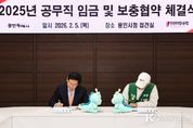 코리아타임뉴스 사회팀 | 용인특례시는 5일 시청 접견실에서 시 소속 공무직 근로자를 대표하는 전국민주연합노동조합 용인지부와 ‘2025년 공무직 임금·보충 협약’을 체결했다고 밝혔다. 이날 체결식에는 이상일 시장과 최승덕 전국민주연합노동조합 용인지부장을 비롯한 노사 교섭위원 10여 명이 참석했다. 이번 협약에는 ▲직종별 기본급 3.2~3.7% 차등 인상 ▲국내 문화체험 제도 신설 ▲질병·육아휴직 복직자의 휴가권 확대 ▲생일 휴가 신설 등 근로 여건과 복지 수준을 개선하는 사항이 포함됐다. 노사 양측은 지난해 4월 24일 제1차 본교섭을 시작으로 본교섭 13회, 실무교섭 7회 등 총 20차례에 걸친 협의를 통해 올해 1월 잠정 합의안을 도출했다. 노조는 지난달 28일 조합원 찬반투표를 거쳐 협약을 최종 확정했다. 이번 협약에 따른 임금 인상분은 2025년 근무분에 대해 소급 적용된다. 이상일 시장은 “시의 어려운 사정을 헤아려 주고 협상을 잘 마무리해 주신 데 대해 감사드린다”며 “앞으로 시의 재정 여건이 점차 나아지게 될텐데, 여러분이 하고 있는 일들을 더 적극적으로 응원하고 지원하겠다”