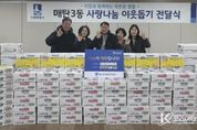 코리아타임뉴스 사회팀 | 수원시 영통구 매탄3동은 지난 4일, 매탄중심상가상인회로부터 설 명절을 맞이해 관내 취약계층을 위한 라면 100박스와 햇반 110박스를 기탁받았다고 밝혔다. 이번 기탁은 설 명절을 앞두고 지역사회에 따뜻한 활력을 불어넣고, 이웃과 함께 정을 나누고자 하는 상인회 회원들의 자발적인 참여로 마련됐다. 기탁된 물품은 매탄3동 행정복지센터를 통해 기초생활수급 가구, 차상위 가구 등 저소득층 이웃들에게 전달되어, 모두가 풍성하고 든든한 명절을 보낼 수 있도록 지원될 예정이다. 정희경 매탄중심상가상인회장은 “설 명절만큼은 우리 주변의 어려운 이웃들이 소외되지 않고 따뜻한 정을 느끼며 든든하게 보내시길 바라는 마음으로 회원들과 정성을 모았다”며, “앞으로도 지역 상인들이 힘을 합쳐 주변을 살피고 나눔을 실천하는 활동에 적극 앞장서겠다”고 전했다. 김병목 매탄3동장은 “매년 명절마다 지역사회를 위한 나눔을 실천해 주시는 매탄중심상가상인회에 진심으로 감사드린다”며 “기탁해 주신 물품은 상인분들의 따뜻한 마음과 함께 관내 어려운 이웃들에게 소중히 전달하겠다”고 감사의 뜻을 전했다. 한편,