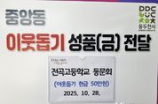 코리아타임뉴스 경기취재본부 | 동두천시청 전곡고등학교 동문회는 지난 28일, 지역 내 어려운 이웃을 돕기 위해 성금 50만 원을 중앙동 행정복지센터에 기탁했다. 전곡고등학교 동문회는 2022년부터 매년 복지 취약계층을 위한 성금을 꾸준히 전달하며 지역사회 나눔 문화 확산에 앞장서고 있다. 이날 전달된 성금은 사회복지공동모금회와 중앙동 지역사회보장협의체를 통해 관내 복지사각지대에 놓인 위기가구를 지원하는 데 사용될 예정이다. 최현규 회장은“작은 정성이지만 지역사회에 보탬이 되길 바라며, 앞으로도 공직자로서 따뜻하고 행복한 지역공동체를 만들기 위해 지속적인 나눔 활동을 이어가겠다”라고 말했다. 양웅식 중앙동장은“이웃사랑을 실천해 주신 전곡고등학교 동문회 회원 여러분께 감사드리며, 소외된 이웃들에게 소중한 성금이 잘 전달될 수 있도록 최선을 다하겠다”라고 전했다.