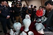 코리아타임뉴스 전남취재본부 | 1300˚C를 견딘 청자의 빛은 영롱하기만 하다. ‘흙과 불 그리고 사람의 이야기’를 주제로 열리고 있는 제54회 강진청자축제. 지난 22일 강진군 대구면 고려청자박물관 제2호가마에서 화목가마 요출행사가 열린 가운데 옛 전통방식 그대로 소나무 장작을 이용해 48시간 동안 구워낸 청자를 꺼내고 있다.