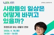 코리아타임뉴스 경기취재본부 | 남양주시는 오는 18일 오후 2시 정약용도서관 3층 세미나실에서 시민 150명을 대상으로 ‘사람들의 일상은 어떻게 바뀌고 있을까’를 주제로 인문학 강연을 개최한다. 이번 강연은 빠르게 변화하는 사회 속에서 시민이 생활 트렌드를 이해하고, 다양한 변화 양상을 인문학적으로 해석할 수 있도록 마련했다. 강연에는 박현영 생활변화관측소 소장이 강연자로 나선다. 박 소장은 트렌드 분석 분야에서 다양한 연구와 저술 활동을 이어온 전문가다. 강연은 사전 신청을 통해 시민 150명을 모집해 운영한다. 박 소장은 강연에서 트렌드 변화 흐름을 중심으로 현대인의 생활 방식 변화를 다양한 사례로 설명할 예정이다. 소비 패턴과 여가 활동, 가치관 변화 등 일상 전반의 흐름을 짚어 시민의 이해를 돕는다. 시는 이번 강연을 시작으로 시민 참여형 인문학 프로그램을 확대하고, 도서관 중심 문화 프로그램을 강화해 시민 삶의 질 향상에 힘쓸 계획이다. 시 관계자는 “이번 강연이 변화하는 시대 속에서 시민이 자신의 일상을 새로운 시각으로 바라보는 계기가 되길 기대한다”며 “앞으로도