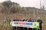 코리아타임뉴스 경북취재본부 | 울진군은 과수화상병의 사전 예방과 확산 방지를 위해 온정면 외선미리 선도농가에서 사과·배 재배농가 15명을 대상으로 4월 9일 과수화상병 예방교육을 실시했다. 과수화상병은 치료가 어려운 국가검역병해충으로, 발생 시 제거 외에는 대응이 어려운 세균성 병해이다. 전염 속도가 빨라 단기간 내 과원 전체로 확산될 수 있어 무엇보다 예방이 중요하다. 이에 군은 4종의 방제약제를 보급하고, 개화 전 1회 및 개화기 3회 방제를 안내했다. 개화기에는 5일 간격으로 방제를 실시하도록 강조하고, 작업복·신발 구분 사용 등 위생관리의 중요성과 의심 증상 발견 시 즉시 신고를 당부했다. 또한 영농일지 및 각종 기록관리 서식을 제공해 철저한 과원 관리를 지도했다. 농업기술센터 관계자는“과수화상병은 사전 예방이 무엇보다 중요한 만큼 농가에서는 적기 방제와 철저한 위생관리를 반드시 실천해 주시길 바란다”며“지속적인 교육과 현장 지도를 통해 피해 예방에 최선을 다하겠다”라고 말했다.