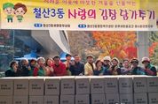 코리아타임뉴스 경기취재본부 | 광명시 철산3동 새마을부녀회는 지난 19일부터 20일까지 이틀간 철산3동 행정복지센터 앞마당에서 ‘사랑의 김장 나누기’ 행사를 열었다. 이번 행사에는 철산3동 새마을부녀회와 유관 단체 회원 50여 명이 참여해 정성껏 담근 김장김치를 취약계층 62가구에 10kg씩, 관내 경로당 9곳에는 20kg씩 전달했다. 또한 한국마사회 광명지사와 광명동부 새마을금고 등 지역의 여러 기관·단체가 따뜻한 나눔에 함께했다. 임순자 회장은 “물가 상승으로 김장 준비가 어려운 이웃들에게 정성껏 담근 김치가 따뜻한 마음으로 전해지길 바란다”며 “앞으로도 회원들과 함께 나눔과 봉사를 꾸준히 이어가겠다”고 전했다. 손영만 동장은 “쌀쌀한 날씨에도 이웃 사랑을 실천한 새마을회원들과 유관 단체원들에게 감사하다”며 “이번 김장 나눔으로 어려운 이웃들이 따뜻한 겨울을 보내길 바란다”고 말했다. 한편, 철산3동 새마을부녀회는 이웃돕기 바자회, 불고기·반찬 나눔, 거리 청소 등 다양한 봉사활동으로 따뜻하고 살기 좋은 지역사회 조성에 힘쓰고 있다.