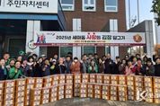 코리아타임뉴스 윤광희 기자 | 오산시 세마동 행정복지센터는 세마동 단체연합이 11월 19일과 20일 이틀간 세마동 행정복지센터 1층 광장에서 지역 취약계층을 위한 ‘2025년 세마동 사랑의 김장담그기’ 행사를 따뜻한 분위기 속에서 진행했다고 밝혔다. 이번 김장 나눔 행사는 19일 김장 속재료 준비를 시작으로, 20일 속 채우기와 포장 등 본 작업이 이어졌으며, 세마동 단체연합은 ‘손끝의 온정을 담아 전합니다’라는 슬로건 아래 정성을 모아 행사를 진행했다. 올해 마련된 김장은 총 480포기 규모로, 세마동 관내 독거노인, 저소득층, 한부모 가정 등 어려운 이웃들에게 20일 당일 전달됐다. 신정순 세마동 새마을부녀회장은 “김장 나눔은 세마동 주민들이 마음을 모아 서로를 돌보는 뜻깊은 시간”이라며 “작은 정성이지만 필요한 이웃들에게 따뜻함이 전해지길 바란다”고 말했다. 유미정 세마동장은 “김장담그기 행사는 세마동 주민들의 마음이 모여 만들어진 정성의 상징”이라며 “정성껏 담근 김치가 겨울을 앞둔 이웃들에게 큰 힘이 되길 바란다”고 전했다.