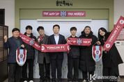 코리아타임뉴스 사회팀 | 이상일 용인특례시장은 11일 오후 시장실에서 용인FC 공식 서포터즈인 ‘용비어천가’와 용인FC의 K리그2 홈 개막전 준비 상황을 공유하며 소통의 시간을 가졌다고 밝혔다. 이날 이상일 시장은 ‘시민과 함께 성장하는 구단’이라는 비전에 따라 용비어천가 운영진 5명과 소통하며 현장의 목소리를 청취했다. 이 시장은 “구단주이지만 전문가가 아니기에 응원과 지원만 할 뿐 용인FC 선수단 구성에 간섭하지 않겠다고 했고, 단 한 명의 선수도 추천하지 않는 등 제가 한 말을 지켰다”라며 “언론에서 선수단 구성이 잘 됐다고 분석하며 ‘다크호스’로 평가하는 만큼 3월 1일 열릴 홈 개막전이 기대된다”라고 했다. 이 시장은 “시즌 개막을 앞두고 서포터즈 여러분과 직접 만나 준비 상황을 공유하고 현장의 이야기를 들을 수 있어 매우 뜻깊은 시간이었다”라며 “K리그2에서 용인FC가 돌풍을 일으킬 수 있도록 용비어천가의 뜨거운 응원과 지속적인 관심을 부탁한다”라고 했다. 이날 용비어천가는 삼가역-미르스타디움 특화 거리 조성과 홈 경기 조아용 팝업 스토어 설치 등을 요청했다. 이 시장은 “삼
