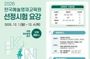 코리아타임뉴스 세종취재분부 | 한국예술종합학교 부설 한국예술영재교육원 세종캠퍼스가 내달 1일부터 4일까지 2026학년도 교육생을 모집한다. 모집인원은 일반전형 ▲음악 31명 ▲무용 15명 ▲전통예술 19명 ▲융합 10명 등 총 75명이며, 사회적배려대상자 전형은 일반전형 인원의 30% 이내로 정원 외 선발한다. 지원 자격은 세종·대전·충남·충북에 주민등록을 둔 청소년이다. 올해 모집부터는 융합 분야가 3년 만에 신규 교육생을 모집하고, 전통예술 분야 선발 방식을 대면 실시시험으로 변경했다. 또한, 초·중·고등학교에 입학하지 않은 학생도 교육생 모집에 지원할 수 있도록 관련 제한 규정을 폐지했다. 한편, 한국예술영재교육원 세종캠퍼스는 지역 예술영재 조기발굴과 교육활성화를 위해 한국예술종합학교 예술영재육성 지역 확대사업에 지난 2020년 세종시를 충청권 협력기관으로 선정하면서 조성됐다. 한국예술영재교육원 세종캠퍼스는 지난 2021년 개원 이후 올해까지 5년 동안 총 269명의 교육생을 선발했다.