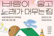 코리아타임뉴스 문화팀 | (재)김포문화재단은 연말연시를 맞아 가족의 온기와 새해의 희망을 담은 하반기 기획전시 '바람이 닿고 노래가 머무는 집'을 12월 20일부터 2026년 3월 6일까지 김포아트빌리지 한옥마을 창작 3·4·5동에서 개최한다고 밝혔다. 이번 전시는 ‘집’이라는 상징을 통해 한 해를 성찰하고 다가올 새해의 행복을 기원하는 시민참여형 전시로, 공현진·오상훈·한경희 작가가 조각, 패브릭, 미디어, 설치 작업을 선보인다. 이번 전시에서 세 명의 작가는 동시대 예술의 언어로 새로운 한해, 새로운 여정을 준비하는 이들에게 서로 다른 방식의 머무름을 건넨다. 공현진 작가는 한국의 무속과 민간신앙을 바탕으로 새해를 맞이하는 마음을 조각에 담아 전통과 현재를 이어내는 새로운 기원의 자리를 마련한다. 오상훈 작가(문화지형연구소 씨티알)는 각자가 지닌 걱정을 털어놓고 서로 교환하며 위로를 얻는 참여형 작업 '걱정교환소'를 소개한다. 한경희 작가는 실과 천 조각들을 이어붙여 겹치고 얽힌 천의 질감 속에서 자연의 풍경을 떠올리며 놀이처럼 즐기는 감각적 체험을 제공한다. 한편, 이번 전시에는 전시 감상을 넘어 시민이