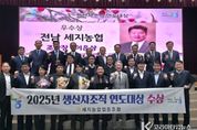 코리아타임뉴스 노승선 기자 | 전라남도 나주시가 지역 대표 특산물 세지멜론의 전국적 경쟁력을 다시 한번 입증했다. 나주시(시장 윤병태)는 세지농협 멜론공선출하회가 농협중앙회 ‘2025 생산자조직 연도대상’에서 우수상을 받으며 공선 조직 기반의 고품질 생산 시스템과 지역 농가의 역량을 공식적으로 인정받았다고 5일 밝혔다. 세지농협(조합장 이은상)에 따르면 멜론공선출하회가 ‘2025년도 생산자조직 연도대상’ 평가에서 우수 생산자조직으로 선정됐다. ‘생산자조직 연도대상’은 농협경제지주가 전국 공선출하회를 대상으로 생산, 선별, 출하, 운영 등 전반의 활동과 품질관리 실적을 종합 평가해 우수 조직을 선정하는 제도다. 산지 조직 활성화와 농업 공동체 발전을 도모하는 대표적 평가로 꼽힌다. 세지농협 멜론공선출하회는 1996년 결성된 이후 현재 69명의 회원이 활동하고 있으며 나주 세지멜론은 약 66ha 재배면적에서 연간 3200톤이 생산된다. 연평균 기온 15도, 풍부한 일조량 등 나주시 특유의 자연조건은 멜론 재배에 최적화돼 있으며 특히 풍부한 과즙과 달콤한 향, 13브릭스 이상을