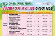 코리아타임뉴스 이아름 기자 | 인천 동구는 중장년층의 성공적인 노후 준비와 사회활동 재참여를 지원하기 위해‘2026년 2기 동구 인생이모작지원센터 프로그램’ 수강생을 모집한다고 밝혔다. 이번 프로그램은 취업·창직·창업 지원과 경력설계, 역량강화, 사회공헌, 생애설계, 친환경 야외체험을 아우르는 종합형 과정으로 구성됐으며, 총 17개 과정이 운영된다. 특히 남성 참여 활성화를 위해 일부 과정에 남성 우선 선발제를 도입하고, 근로 중인 중장년의 참여 확대를 위해 야간 과정도 함께 개설한다. 교육은 2026년 4월 1일~6월 30일까지 진행되며, 동구에 거주하는 40세~64세까지의 중장년을 대상으로 동구 인생이모작지원센터 (청본이룸터 1층)에서 실시된다. 취업·창직 분야에서는 에어컨 클리너와 배관세척 관리사 과정, 인공지능을 활용한 전자책 출판, 유튜브 1인 크리에이터, 블로그 수익화 과정 등을 운영해 새로운 직무와 수익 모델을 탐색할 수 있도록 지원한다. 이와 함께 ‘중장년 창업‧창직 스타터 과정’을 통해 소규모 맞춤형 교육과 개별 컨설팅을 연계하고, 사업 아이디어 구체화와 비즈니스 모델
