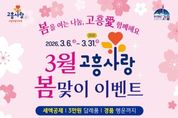 코리아타임뉴스 전남취재본부 | 고흥군은 3월을 맞아 고향사랑기부제 참여 확대를 위한 ‘봄맞이 이벤트’를 추진한다고 밝혔다. 이번 이벤트는 상반기 기부 참여 분위기를 확산하고, 세액공제 혜택과 답례품 제도를 다시 안내해 참여 기반을 강화하기 위해 마련됐다. 이벤트 기간은 3월 6일부터 31일까지이며, 기간 내 고흥군에 10만 원 이상 기부하면 자동으로 응모된다. 군은 무작위 추첨을 통해 100명을 선정해 네이버 모바일 쿠폰(1만 원권)을 제공할 예정이다. 추첨과 경품 발송은 4월 중에 진행된다. 고향사랑기부제는 10만 원까지 전액 세액공제가 적용되며, 10만 원 초과 20만 원 이하 기부 시 44% 세액공제 혜택이 있다. 또한 기부금의 30% 이내에서 지역 특산물 답례품을 받을 수 있다. 현재 고흥 한우를 비롯해 쌀, 유자 가공품, 마른김, 꿀 등 지역을 대표하는 농수특산물이 답례품으로 제공되고 있다. 군은 누리집 알림창(팝업), 사회관계망서비스(SNS) 채널, 문자 안내 등 온라인 홍보를 강화하고, 주요 관광지와 다중이용시설에 배너를 설치해 오프라인 홍보도 함께 추진할 계획