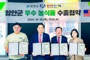 코리아타임뉴스 경남취재본부 | 함안군은 미국 시장 개척을 위한 첫 공식 방문에서 의미 있는 성과를 거두며 해외 수출 확대에 청신호를 밝혔다. 군은 지난 14일 조근제 함안군수를 단장으로 신해근 농협함안군지부장, 안문준 농업기술센터 소장을 비롯해 관내 우수 농식품 업체 4곳과 함께 미국 시장 개척단을 구성해 미국 로스앤젤레스를 방문했다. 이번 방문에서 함안군은 로스앤젤레스 현지 농식품 유통 전문기업 바다글로벌(BADA GLOBAL)과 100만불 규모의 농식품 수출 활성화 업무협약을 체결했다. 바다글로벌은 로스앤젤레스에 본사를 둔 한인 식품 유통 기업으로, 미국 전역에 물류망과 유통망을 보유하고 있어 함안 농식품의 미국 시장 진출 교두보 역할이 기대된다. 조근제 군수는 “이번 협약은 함안 농식품의 우수성을 세계 시장에 알릴 수 있는 기회”라며 “케이-푸드(K-푸드)에 대한 관심 증가와 함께 현지 유통망를 확대해 수출 기반을 공고히 하겠다”고 말했다. 함안군은 이번 미국 방문을 통해 아시아 중심이었던 기존 수출 시장을 북미 지역으로 다변화하는 계기를 마련했으며, 앞으로도 농식품 세계화를 위한