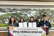 코리아타임뉴스 사회팀 | (재)군포시청소년재단 군포시청소년수련관은 2026년 3월 17일부터 19일까지 관내 초등학교 8개교와 '찾아가는 전통예절교실' 운영을 위한 업무협약(MOU)을 진행하고 있다. 이번 협약은 지역 학교와의 협력을 통해 청소년 인성교육을 강화하고, 전통문화 기반의 체험형 프로그램을 안정적으로 운영하기 위해 추진되고 있다. 협약은 산본초등학교(교장 유명숙)를 비롯한 관내 초등학교 8개교를 대상으로 순차적으로 진행되며, 수련관 관장과 각 학교 교장 및 관계자가 참석한 가운데 체결되고 있다. '찾아가는 전통예절교실'은 군포시 관내 초등학교 저학년을 대상으로 다도(茶道), 공수배례법, 전래놀이, 명상 등 다양한 전통문화 체험을 통해 ‘공감과 배려’ 중심의 인성 함양을 지원하는 프로그램이다. 군포시청소년수련관은 이번 협약을 통해 학교와의 협력체계를 강화하고, 현장 맞춤형 교육을 제공함으로써 청소년의 균형 있는 성장과 건강한 학교문화 조성에 기여할 계획이다. 또한 운영 횟수를 확대하고 3가지 테마형 커리큘럼을 도입해 프로그램의 전문성과 다양성을 높일 예정이다. 박윤정 군포시청소년수련관 관장
