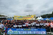 코리아타임뉴스 사회팀 | 충청북도교육청 인성시민과 교직원 44명이 18일, 제23회 청원생명쌀 대청호 마라톤 대회에 참가해 지역사회에 '모두가 함께, 올(All)바른 학교 만들기' 홍보에 나섰다. 충북교육청이 추진 중인 정책에 대해 현수막, 리플릿, 손팻말 등의 다양한 방법을 통해 홍보를 했다. 올해 충북교육청은 '모두가 함께, 올(All)바른 학교 만들기'를 위해 노력하고 있다. 올바른 학교는 말이나 생각, 행동이 이치나 규범에 벗어남이 없이 옳고 바른 학생들의 학교 문화이다. ▲365일 언제나 책봄 ▲필사‧명상 마음근육 강화 ▲아동학대 예방 ▲학교폭력 제로화 ▲도박문제 예방 ▲디지털 성폭력 예방 및 불법촬영 근절 ▲모두가 나다움 양성평등 등의 다양한 사업을 전개하고 있다. 독서를 통해 학생들의 정서 성장 지원에 도움을 주는 '365일 언제나 책봄', 필사와 명상으로 학생들의 마음을 강화하는 '필사‧명상 마음근육 강화', 존중과 다양성이 살아있는 차별 없는 학교를 위한 '모두가 나다움 양성평등' 등이다. 또한, 최근 이슈화 되고 있는 사회적 문제를 예방하기 위해 '아동학대 예방', '