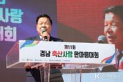코리아타임뉴스 경남취재본부 | 고성군은 경남도와 산청군이 주최하고 경남축산단체협의회와 경남농협이 주관한 ‘제11회 경남 축산사랑 한마음대회’가 10월 17일, 고성군 스포츠파크 4구장에서 개최됐다고 밝혔다. '미래를 여는 힘! 건강한 축산, 행복한 경남!'이라는 주제로 열린 이번 행사에는 박완수 도지사, 류길년 농협 경남지역본부장 등이 참석한 가운데 도내 축산농가 1000여 명이 참석해 성황을 이뤘다. 행사는 식전 축하공연을 시작으로 축산발전 유공자에게 도지사 표창 및 공로패 수여, 행사 퍼포먼스에 이어 축종 별 우수 축산물 시식회, 축산물 소비촉진 행사, 축산물을 이용한 소비자 체험, 축산기자재 홍보 및 전시관 운영, 어울림 한마당 등 다양한 프로그램으로 진행됐다. 이상근 고성군수는 환영사에서 "최근 사료값 인상과 인건비 상승, 가축전염병 발생 증가 등으로 축산인이 어려움을 겪고 있다"라며, "꿋꿋하게 현장을 지켜온 축산인들의 화합과 단결로 축산업의 미래를 모색하는 소중한 자리가 되길 바란다"라고 전했다. 한편 이날 시상식에서는 축산과 박경민 주무관이 축산발전유공 도지사상을, 축산과 축산행정담당