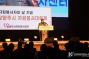 코리아타임뉴스 경기취재본부 | 남양주시는 지난 6일 남양주시체육문화센터 실내체육관에서 ‘2025년 남양주시 자원봉사 대축제’를 성황리에 개최했다고 7일 밝혔다. 이번 행사는 12월 5일 ‘자원봉사자의 날’을 기념해 사단법인 남양주시자원봉사센터에서 주최했으며, 한 해 동안 남양주 곳곳에서 나눔을 실천한 자원봉사자들의 노고를 격려하고 활동의 결실을 함께 나누기 위해 마련됐다. 행사에는 1,300여 명의 자원봉사자와 내빈이 참석해 뜻깊은 시간을 함께했다. 식전공연으로 줌바댄스 ‘아이린줌바크루’의 역동적인 무대가 펼쳐졌으며, 1부 축하 행사에서는 자원봉사자 MC 장현주의 진행 아래 캘리그래피 퍼포먼스 ‘캘리깡패’가 이어졌다. 이와 함께 가수 연미연과 이효진의 축하공연이 더해져 현장의 분위기를 한층 뜨겁게 달궜다. 2부 기념식에서는 ‘무럭이가족봉사단’ 김태하 어린이가 가족봉사활동 경험을 나누는 이그나이트 발표를 통해 자원봉사의 의미를 되새기는 감동적인 시간을 선사했다. 남양주시민의 자원봉사 참여는 올해 큰 성장을 기록했다. 11월 기준 자원봉사자 등록 인원은 약 21만 명으로 전체 시민의 약 29%에 달해,