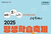 코리아타임뉴스 문화팀 | 고양특례시는 오는 25일 일산호수공원 주제광장에서 ‘2025년 고양특례시 평생학습축제’를 개최한다고 밝혔다. 올해 축제는 ‘배움·모두·나눔으로 행복을 꿈꾸는 고양특례시’를 주제로, 약 30여 개의 평생학습기관 및 단체, 동아리가 한 자리에 모여 2025년 고양시의 평생학습 성과를 공유하는 뜻깊은 자리로 마련됐다. 행사장에서는 고양시 신중년대학 프로그램을 운영하는 관내 4개 대학과 고양시 평생학습강좌 등 다양한 체험부스와 성인문해교육기관인 높빛희망학교의 시화전시 등 다채로운 프로그램을 만나 볼 수 있다. 또한, 공개모집을 통해 선정된 기관 및 학습동아리의 ▲자투리가죽 키링만들기 ▲레진키링 만들기 ▲재활용 페트병 무드등 만들기 ▲작가와 함께하는 창의·예술 공예 체험 등 시민들이 직접 참여하고 즐길 수 있는 체험부스도 풍성하게 마련했다. 무대 공연으로는 높빛희망학교 학습자 시낭송, 학습동아리 중창 및 기타 합주, 청소년 자율동아리 댄스 등이 펼쳐져 배움의 결실을 무대에서 함께 나눌 예정이다. 특별공연으로는 고양특례시 태권도 시범단, 고양시립합창단, 벌룬퍼포먼스가 준비