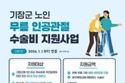 코리아타임뉴스 의료보건팀 | 기장군은 오는 2026년부터 부산시 최초로 ‘어르신 무릎인공관절 수술비 지원사업’을 확대 시행한다고 23일 밝혔다. 군은 기존 국가 지원사업으로 기초생활수급자 및 차상위계층 등에 한정됐던 지원 범위를 대폭 확대해, 기준 중위소득 150% 이하(2025년도 2인 가구 기준 월 소득 5,898,987원) 어르신까지 수술비를 지원한다. 사업은 2026년 1월 1일부터 연중 시행되며 기장군 자체 예산을 투입해 진행된다. 지원 대상은 기장군에 1년 이상 주민등록이 되어있고 기준 중위소득 150% 이하의 60세 이상 어르신이다. 수술의료기관에서 ‘인공관절치환술(슬관절)’ 진단을 받았다면 수술 전에 신청 가능하다. 지원 금액은 한쪽 무릎 기준 최대 100만원으로, 본인부담금에 해당하는 수술비 내에서 지원된다. 수술 전 보건소에 방문하여 신청서와 진단서 등을 제출하면 자격 확인 후 대상자로 확정되며, 수술 후 90일 이내에 지원금 청구가 가능하다. 단, 비급여 항목, 통원진료비, 지원대상자 선정 이전 발생한 의료비 등은 제외되며, 실손보험금, 노인