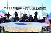 코리아타임뉴스 노승선 기자 | ‘2025 진도국제무형문화축전’이 진도군을 뜨겁게 물들이며, 전통과 예술의 향연 속에서 화려한 막을 내렸다. ‘진도국제무형문화축전’은 지난 10월 30일부터 11월 2일까지 4일간 진도군 향토문화회관과 철마공원에서 진행됐다. 진도군이 주최하고 진도문화도시센터가 주관한 이번 축전은 ‘다음 세대로 흐르다’를 주제로 진도의 대표 전통문화와 세계 각국의 무형문화유산을 한자리에서 선보인 세계적인 문화축제로 진행됐다. 개막식은 10월 31일 ‘보배섬 문화예술제 축하의 밤’과 함께 열렸고, 가수 송가인, 마이진, 울랄라세션, 최진희, 설화 등 진도 출신의 유명 가수들이 출연해 화려한 무대를 선사하며 축제의 열기를 더했다. ‘진도내림 프로그램’에서는 ▲진도다시래기 ▲진도씻김굿 ▲진도만가 ▲진도소포걸군농악 ▲진도북놀이 행렬 ▲남도잡가 ▲진도북 페스티벌 ▲강강술래 등 진도만의 예술정신과 전통의 멋을 생생히 담아냈다. 국내 초청공연으로는 ▲삼도아리랑(밀양·정선·진도) ▲안성바우덕이풍물공연 ▲강릉단오제 관노가면극 등이 무대에 올라 우리 전통의 흥과 멋을 선보였다.