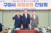 코리아타임뉴스 윤경수 기자 | 구미시는 9월 30일 국회를 방문해 구자근, 강명구 지역구 국회의원과 간담회를 열고 지역 주요 현안과 국비 확보 전략을 논의했다. 이날 간담회에는 김장호 시장을 비롯해 구미시 주요 간부 공무원 등 30여 명이 참석했다. 시는 현안 사업 추진 상황과 정부 예산 동향을 공유하며 국회 차원의 전략적 지원 방안을 모색했다. 주요 현안사업으로는 △구미국가산업단지 1~3단지 연결교량 신설 △구미~신공항 철도건설 △대한민국역사박물관(구미산업화역사관) 건립 △새마을운동중앙회 및 연수원 유치 △'5극 3특'국가균형성장 전략 대응 △한국은행 구미지역본부 유치 △'방위산업 소재ㆍ부품ㆍ장비 특화단지'유치 △국가 푸드테크 클러스터 조성 등이 논의됐다. 주요 국비사업으로 △구미시 제조창업 인큐베이팅 센터 구축 △AX 실증산단 구축 사업 △지역 주력 중소기업형 인공지능 데이터 스페이스 구축 △차세대 디스플레이 핵심부품ㆍ소재 기술개발 △반도체 장비 챔버용 소재부품 제조 및 검증 테스트베드 구축 △수요확대형 배터리 테스트베드 구축 △구미 산동 국민체육센터 조성 △푸드테크 연구지원센터 구축 △펫테크 산업화 지원센터 구축 △4