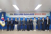 코리아타임뉴스 사회팀 | 전라남도교육청과 전남교사노동조합은 3월 31일 청사 중회의실에서 ‘2026년 정책협의회 개회식’을 갖고 교육 현안에 대한 해법 모색에 나섰다. 이번 정책협의는 교사의 교육활동을 보호하고 학교 현장의 요구를 정책에 반영해 보다 실효성 있는 교육환경을 조성하고, 노사 간 상생과 협력으로 지역과 세계가 공생하는 글로컬 전남교육을 실현하기 위해 마련됐다. 노·사 양측은 이번 정책협의에서 ▲ 교사 근무여건 개선 및 본질업무 회복 ▲ 교육활동 보호 ▲ 학교행정업무경감 ▲ 학생생활지도 개선 ▲ 학교 교육 환경 개선 등 현장의 요구를 반영한 54개 항목을 집중 협의한다. 전남교육청은 노사 협의를 통해 도출된 합의안을 정책에 반영해 단계적으로 추진할 계획이다. 또한 지속적인 협의를 통해 교육 현장의 의견을 반영하고 실질적인 변화를 이끌어 갈 방침이다. 전라남도교육청 대표위원 김대중 교육감은 “이번 정책협의회를 통해 현장의 목소리를 반영한 정책으로 교사가 교육에 전념할 수 있는 교육 환경을 만들겠다.”면서 “학생 중심 교육 실현을 위해 지속적으로 소통을 강화하겠다.”고 밝혔다.