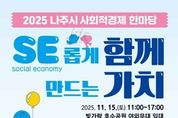 코리아타임뉴스 노승선 기자 | 전라남도 나주시가 사회적경제기업의 지속 가능한 가치와 시민 참여를 함께 담은 축제의 장을 개최한다. 나주시는 오는 15일 빛가람동 호수공원 중앙무대에서 ‘2025 사회적경제 한마당’을 연다고 11일 밝혔다. 시는 이번 행사를 통해 사회적경제의 성과를 시민과 공유하고 기업 간 협력과 판로 확대를 지원함으로써 지역경제 활성화에 새로운 활력을 불어넣을 계획이다. 이번 행사는 사회적경제기업의 홍보와 지속 가능한 가치 확산을 목표로 마련됐으며 나주시 사회적경제기업 20개소가 참여해 시민과 함께하는 다양한 프로그램을 선보일 계획이다. 행사에서는 지역경제 발전에 기여한 유공자 표창식을 시작으로 사회적경제기업의 제품과 활동을 소개하는 홍보관, 어린이들이 즐길 수 있는 경제체험존, 시민 참여형 랜덤플레이 댄스와 문화 공연 등이 진행돼 사회적경제의 의미를 쉽고 즐겁게 체험할 수 있다. 특히 참여 기업들은 현장에서 직접 제품을 선보이고 시민들과 소통하며 사회적경제기업의 판로 확대와 브랜드 인지도 제고의 기회를 마련할 전망이다. 윤병태 나주시장은 “이번 사회적경제