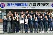코리아타임뉴스 박찬식 기자 | 경산시는 2026년 2분기 경산 희망기업으로 삼일방직(주)을 선정하고, 1일 시청 대회의실에서 경산 희망기업 선정식을 가져 트로피와 현판을 수여했다. 진량읍에 위치한 삼일방직(주)(대표 노희찬)은 45년 이상의 업력을 보유한 섬유 제조 강소기업으로 2010년 부설 연구소(PILOT 공장)를 설립하여 신제품개발과 공정개선에 집중하며 2013년 섬유업계 최초로‘월드클래스 300 프로젝트’에 선정되는 쾌거를 이루며 지역기업으로서 탄탄한 기반을 다져왔다. 특히, 2017년에는 미국 애틀란타 소재의 중견 방적 기업인 뷸러 퀄리티얀스(BQY)를 인수하는 전략적 선택과 단계적인 설비 투자로 현지화에 성공하며 미주와 유럽 시장에 진출하는 교두보를 마련했다. 또한, 사원들의 자기 계발 교육비 지원, 학자금 지원 제도, 근로복지 기금을 운영하며 근로자의 삶의 질 향상에도 최선을 다해왔다. 그로 인해 창립 이래 단 한 번의 노사분규도 발생하지 않았으며, 노(勞)와 사(使)가 상생 협력하는 선진적인 노사 문화 정착에 앞장섰다. 노희찬 대표는 “경산 희망기업으로 선정되어 지역기업으로서 책임