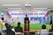 코리아타임뉴스 경북취재본부 | 지난 12월 15일 김천시 대곡동 행정복지센터에서는 50여 명의 대곡동 주민들이 모인 가운데, 대곡동 마을건강복지계획 비전 선포식이 성황리에 개최됐다. 마을건강복지계획은 주민들의 자발적인 참여와 협력으로 마을의 복지 문제를 발굴하고 해결해 가는 활동 과정으로, 대곡동 주민들이 직접 발굴한 지역의 문제를 함께 고민하고 해결하기 위한 첫걸음이다. 비전 선포식은 대곡동 주민평생학습교실에서 갈고 닦은 신나는 퓨전장구의 축하공연을 시작으로 추진 경과보고, 활동 영상 시청, 분과별 발표 등이 진행되어 그동안의 마을건강복지계획추진단의 발자취를 엿볼 수 있었다. 이광동 마을건강복지계획 추진단장은 개회사를 통해 “주민이 주인이 되어 마을의 문제를 진단하고 해결하는 사람 냄새 나는 따뜻한 마을을 만들기 위해 무엇을 할 것인지 추진단원과 함께 고민했다.”라며, “마을건강복지계획의 초석을 다지고 주민이 체감할 수 있는 복지 실현을 위한 첫발을 내딛게 됐으니 많은 응원과 격려를 부탁한다.”라고 말했다. 강진규 대곡동장은 축사를 통해 “비전 선포식을 하기까지 많은 노력을 기울여 주신 추진단원