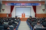 코리아타임뉴스 경남취재본부 | 사천시는 2일 오전 10시 시청 대강당에서 박동식 사천시장을 비롯해 김제홍 부시장, 국·소장 및 전 직원이 참석한 가운데 2026년 병오년 시무식을 개최했다. 이날 시무식은 시정 홍보영상 시청, 유공 공무원 표창 수여, 신년사 순으로 진행됐으며, 공식 행사에 앞서 2025년 혁신주니어보드 최우수팀의 이지연 주무관이 ‘MZ의 시선에서, 소소하고 확실한 혁신’을 주제로 조직문화와 일하는 방식 개선에 대한 아이디어를 제시해 시무식 분위기에 변화를 더했다. 특히, ▲글로벌 우주항공복합도시 도약 ▲머무는 해양·문화 관광도시 완성 ▲민생경제 회복 및 지역상권 보호 ▲교통·정주환경 개선과 시민 안전 강화 ▲아이부터 어르신까지 행복한 복지도시 조성 등 올해 시정 운영의 5대 중점 과제를 제시했다. 유공 공무원 표창 수여식에서는 국무총리 표창(박민경, 박현아, 배현기, 김미경)을 비롯해 행정안전부장관 표창(강영욱,하동훈), 보건복지부장관 표창(유재희) 경상남도지사 표창(조인영, 이현진, 강선미, 박예슬, 최재형, 김수지) 등 총 13명의 직원이 성실한 공직 수행의 공로를 인정받아 수상의 영예를 안
