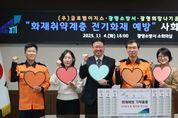 코리아타임뉴스 김태훈 기자 | 광명소방서는 11월 4일 오후 4시, 광명소방서 2층 소회의실에서 (주)글로벌이지스, 광명희망나기운동본부와 함께 사회공헌 기탁식을 진행했다고 밝혔다. 이번 기탁식은 겨울철 소방안전대책의 일환으로 추진되는 ‘화재취약계층 전기화재 예방사업’의 일환으로 마련됐다. 이날 글로벌이지스는 전기 과부하로 인한 화재를 초기에 차단할 수 있는 자동소화멀티탭(엘리펀탭) 312개를 광명희망나기운동본부를 통해 기탁했으며, 기탁 물품은 겨울철 화재위험이 높은 취약계층 가정에 순차적으로 전달될 예정이다. 특히, 전기화재 예방 제품을 개발해 온 글로벌이지스와 지역 복지안전망 역할을 수행 중인 광명희망나기운동본부가 함께한 이번 협력은 민간기업과 공공기관이 힘을 모아 시민의 안전을 지키는 뜻깊은 사례로 평가된다. 행사에는 이종충 광명소방서장을 비롯해 윤혜빈 글로벌이지스 본부장, 이세열 광명희망나기운동본부 본부장 등 관계자 20여 명이 참석했고, 참석자들은 기탁식 이후 취약계층 주거환경 개선과 전기화재 예방을 위한 협력 방안을 논의했다. 이종충 서장은 “지역 기업과 복지협의회의 따뜻한 나눔이 시민의
