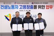 코리아타임뉴스 윤광희 기자 | 안산도시공사는 한국노총 경기본부 안산지역지부, 한국건설산업노동조합 서경인총괄본부와 업무협약을 맺었다고 4일 밝혔다. 지난 3일 체결된 이번 협약은 안산도시공사가 참여하는 장상, 의왕·군포·안산 등 3기 신도시 건설사업을 통해 지역 건설노동자에게 양질의 일자리를 제공하고, 지역경제를 활성화하기 위해 마련됐다. 협약에 따라 안산도시공사는 지역 내 건설사업을 적극 발굴·추진하고, 지역 건설노동자의 고용 확대에 기여할 방침이다. 한국노총 안산지부와 한국건설산업노동조합 서경인총괄본부는 건설사업에 필요한 노동력을 안정적으로 공급하고 사업이 원활히 추진될 수 있도록 전방위적으로 협력할 예정이다. 세 기관은 아울러 향후 협약 내용을 기반으로 정기적인 소통과 협력체계를 유지하며, 지역 건설노동자의 근로환경 개선을 위해 적극 협력해 나갈 계획이다. 방운제 한국노총 안산지부 의장은 “이번 협약은 공공기관과 노동계가 함께 손잡고 고용 안정과 지역 상생을 도모하는 좋은 사례가 될 것”이라고 말했다. 이한서 한국건설산업노동조합 서경인총괄본부장 또한 “협약을 통해 건설노동자의 고용