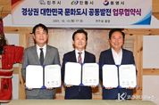 코리아타임뉴스 노승선 기자 | 대한민국 문화도시로 지정된 진주와 안동, 통영 등 경상권 3개 도시들이 대한민국 문화도시의 성공적인 조성을 위한 협력의 첫걸음을 내딛었다. 진주시는 13일 진주성 ‘중영’에서 조규일 진주시장을 비롯해 권기창 안동시장, 허대양 통영부시장 등 3개 도시의 시장과 관계자들이 참석해 ‘경상권 대한민국 문화도시 업무협약식’을 갖고 문화도시의 비전과 협력방안을 공유했다. ‘경상권 대한민국 문화도시 업무협약’은 각 문화도시가 보유한 사업 운영방안과 전략, 문화 인프라를 상호 공유·활용해 업무역량을 강화하고 시너지를 창출하는데 목적이 있다. 이번 협약으로 경상권 문화도시는 ▲대한민국 문화도시 조성사업 공동추진 ▲문화예술인 교류 확대 ▲권역별 특성을 반영한 시민 참여형 문화프로그램 개발 ▲국내외 문화도시 네트워크 강화 등을 함께 추진하기로 했다. 조규일 진주시장은 “경상권 도시 간 유기적이고 협력적인 관계 형성과 상생발전을 통해 대한민국 문화도시 사업의 성공을 위해 오늘 자리를 마련하게 됐다”며, “문화로 빛나고 관광으로 즐거운 지속 가능한 서부경남 문화관광 생태계를 조성하여, ‘빛