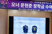코리아타임뉴스 사회팀 | 문현준 e스포츠 선수의 팬클럽은 29일 광주동신고등학교에 장학금 400만원과 600만원 상당의 후원물품을 기탁했다. 광주동신고 출신인 문현준(활동명 ‘Oner’) 선수는 세계적인 e스포츠 팀 T1의 주전 멤버로 활약하고 있다. 엄격한 자기관리와 과감한 결단력으로 전 세계적으로 인기를 누리고 있다. 특히 지난 11월 9일 열린 '리그 오브 레전드 2025 월드 챔피언십'에서 우승하며 세계 최고의 실력을 입증했다. 팬클럽 측은 문 선수가 꿈을 키웠던 광주동신고 후배들을 격려하기 위해 이번 기부를 결정했다. 장학금은 1~2학년 학생 8명에게 50만원씩 수여됐다. 또 문 선수의 월드 챔피언십 우승을 기념해 특별 제작한 ‘친필 사인 야구점퍼’ 등 600만원 상당의 물품을 학생들에게 전달했다. 장학금을 받은 2학년 이성준 학생은 “선배의 사랑에 힘 입어 학업에 전념할 수 있을 것 같다”며 “끊임없이 도전하고 실력을 쌓아 사회에 기여하는 인재가 되겠다”고 소감을 밝혔다. 광주동신고 한래진 교장은 “문 선수와 팬들의 따뜻한 마음이 학교 공동체에 선한
