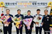 코리아타임뉴스 김태훈 기자 | 영동소방서는 9일 영동읍 부용리 소재 여성회관에서 영동의용소방대장 합동 이·취임식 행사를 개최했다. 이번 행사는 전임 의용소방대장의 노고를 치하하고, 신임 의용소방대장의 앞날을 축복하고 격려하기 위해 의용소방대원 등 소방가족 150여 명이 참석한 가운데 진행됐다. 이날 이임하는 서제원(63, 남)황간남성의용소방대장, 송일남(52, 남)용산의용소방대장, 정재만(56, 남)심천의용소방대장은 그동안 지역사회 안전에 이바지한 공로를 인정받아 공로패를 전수 받았다. 또한 새로 취임하는 민창기(55, 남)영동남성의용소방대장, 손기진(60, 남)황간남성의용소방대장, 김광현(58, 남)용산의용소방대장, 이내응(56, 남)심천의용소방대장은 대원들 사이에 두터운 신뢰와 함께 지도력과 통솔력을 인정받아 이번 신임 대장에 취임하게 됐다. 한편 영동소방서 의용소방대는 13개대 321명으로 구성되어 있으며, 화재 진압은 물론 전문강사 양성을 통한 주민 안전 교육, 주택용소방시설 설치 참여, 불우이웃 성금 기부 등 지역 사회 안전문화를 선도하고 있다. 이도형 서장은 “바쁜 생업에도