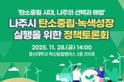 코리아타임뉴스 노승선 기자 | 나주시의회는 오는 11월 28일 오후 2시, 동신대학교 혁신융합캠퍼스 205호에서 '나주시 탄소중립·녹색성장 실행을 위한 정책토론회'를 개최한다. 이번 토론회는 나주시의회 에너지발전특별위원회가 주관하며, 지역 특성에 맞는 탄소중립 실행전략과 시민 참여 방안을 논의하기 위해 마련됐다. 이번 토론회는 지난 10월 개최된 ‘영산강 국가정원 탄소중립 포럼’에서의 논의에 이어 탄소중립 이행 전략부터 ‘에너지 수도 나주’의 미래 산업전환 과제까지 주제를 확장하는 후속 논의의 성격을 갖는다. 에너지발전특별위원회가 지역 현안과 중장기 전략을 동시에 다루는 연속형 정책 논의의 장을 마련하고 있다는 점에서 큰 의미가 있다. 최근 '탄소중립·녹색성장 기본법'에 따라 모든 지자체는 탄소중립 녹색성장 실행계획을 수립·제출하고 있으며 2026년부터는 정부의 연례 이행점검이 본격화될 예정이다. 이에 따라 기후위기 대응뿐 아니라 산업 경쟁력 유지, 지역경제 활성화, 시민 수용성 제고 등 다양한 요소를 고려한 통합적 접근이 강조되고 있다. 특히 ‘에너지 수도’ 나주시의 경우