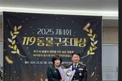 코리아타임뉴스 김태훈 기자 | 전남소방본부는 순천소방서 119구조대 소속 양달승 소방위가 동물구조 활동에 기여한 공로를 인정받아 ‘2025년 12월 119동물구조대상’을 수상했다고 밝혔다. ‘119동물구조대상’은 사단법인 동물자유연대가 주관하는 포상으로, 동물 보호와 구조에 헌신한 소방기관과 소방공무원에게 감사의 뜻을 전하기 위해 마련됐다. 시상식은 12월 29일 오전 11시, 서울 성동구 동물자유연대에서 개최됐으며, 양 소방위는 감사패와 상금 500만 원을 받았다. 양달승 소방위는 2002년 소방공무원으로 임용되어 약 23년간 구조 현장을 지켜온 베테랑 구조대원으로, 최근 1년간 52건의 동물구조 출동을 수행하며 위험한 상황에서도 침착하고 세심한 구조 활동으로 사람과 동물 모두의 생명을 지켜왔다는 평가를 받고 있다. 특히 전남소방은 지난해(2024년) ‘119동물구조대상’에서 여수소방서 소속 채영섭 소방위가 수상한 데 이어, 올해 양달승 소방위가 수상자로 선정되며 2년 연속 수상이라는 의미 있는 성과를 거뒀다. 주영국 전남소방본부장은 “위험한 상황에서도 신속하고 세심한 구조 활동을 통