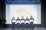 코리아타임뉴스 김택호 기자 | 아산시 노사민정협의회(위원장 오세현 시장)는 23일 모나밸리에서 협의회 위원과 기업 관계자 등 100여 명이 참석한 가운데 ‘2025 아산시 노사민정협의회 성과보고회’를 열고, 올해 협력사업 성과를 공유했다. 이번 성과보고회는 노·사·민·정이 함께 추진해 온 상생협력사업의 운영 성과를 점검하고, 지역 노동정책의 향후 추진 방향을 모색하기 위해 마련됐다. 먼저 ‘2025년 노사민정 협력사업 운영성과 보고’를 통해 노동자 지원과 기업 지원을 함께 아우르는 주요 협력사업 성과가 보고됐으며, 이어 ‘제3차 노동정책 기본계획 최종보고’에서는 지역 노동환경 개선을 위한 중·장기 정책 과제와 향후 추진 방향이 제시됐다. 협의회는 올해 △노동자 심리치유 지원 △영세사업장 인사·노무 컨설팅 △청년 노동권익 보호 △산업안전 분야 지원 등 현장 중심의 협력사업을 추진해 왔다. 특히 산업안전 분야에서는 상생협력사업의 하나로 ‘산업안전 우수기업 발굴·지원’을 추진해 관내 3개 기업을 우수기업으로 선정하고 인증서를 수여했다. 인증기업 대표들은 행사에 참석해 안전문화 확산에 대한 실천 의지를 밝