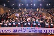 코리아타임뉴스 이아름 기자 | 정선군은 12월 23일 정선문화예술회관 3층에서 한 해 동안 지역 곳곳에서 이웃사랑을 실천해 온 자원봉사자들을 격려하고 자원봉사 문화 확산을 도모하기 위해 ‘2025 정선군자원봉사자대회’를 개최했다. 이번 행사에 최승준 정선군수를 비롯해 전영기 정선군의장, 관계기관·단체장, 자원봉사자와 봉사단체 대표 및 회원 등 500여 명이 참석했다. 자원봉사자대회는 지역사회 곳곳에서 묵묵히 봉사활동을 이어온 자원봉사자들의 노고를 격려하고, 자원봉사 활동의 가치와 의미를 공유함으로써 지역 공동체의 결속력을 강화하기 위해 마련됐다. 행사는 자원봉사활동 영상 상영, 개회선언, 유공 자원봉사자 시상, 대회사 및 격려사 등으로 구성된 본행사가 진행됐으며, 2부 행사에서는 축하공연과 경품 추첨 등을 통해 참여자 간 화합의 시간을 가졌다. 특히 이날 행사에서는 개인 및 단체 등 총 35명이 자원봉사 유공자로 선정돼 표창을 받았다. 수상단체는 정선수난전문의용소방대, 사북읍자율방범대, 해병대정선군전우회, 정선군모범운전자회, 가족봉사단 화랑가족팀, 정선읍 자율방범대 등 6개 단체이며, 개인 수상자는