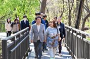코리아타임뉴스 기동취재팀 | 의정부시는 4월 7일 ‘추동 숲정원’ 조성 현장을 방문해 추진 현황을 점검하고, 지역 주민의 의견을 수렴했다. 능골 무장애길 입구부터 하늘마당, 잣나무쉼터, 물놀이장까지 약 6.0km 구간을 따라 현장을 확인하며 건의사항을 청취했다. 추동 숲정원은 약 22만 평 규모의 추동공원을 도심 속 생태 공간이자 산림휴양 공간으로 조성하는 사업이다. 현재 42.2ha 규모의 숲가꾸기와 8.8km 구간의 숲길 정비, 과학도서관 및 물놀이장 입구와 테마정원 조성을 완료했다. 하늘마당과 잣나무쉼터, 순환산책로(무장애길 1.4km, 숲둘레길 2.7km) 조성사업은 착공해 올해 상반기 준공을 목표로 추진 중이다. 특히 공원 정상부인 효자봉에 들어설 ‘하늘마당’은 주변 경관을 한눈에 조망할 수 있는 전망 공간으로 조성할 계획으로, 일출‧일몰을 감상할 수 있는 장소로 활용될 전망이다. ‘잣나무쉼터’는 잣나무와 전나무 숲 속에 목재 데크와 해먹 등을 설치해 시민들이 자연 속에서 온전히 쉴 수 있는 힐링 공간으로 꾸밀 예정이다. 시는 현장 관리와 안전 확보를 위해 해빙기