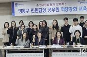 코리아타임뉴스 사회팀 | 수원시 영통구는 지난 25일, 영통구청 상황실에서 구청 및 12개 동 민원 담당 공무원을 대상으로 수원가정법원과 함께하는 역량 강화 교육을 실시했다. 이날 특별 초빙된 수원가정법원 박민숙 사무관과 유신임 행정관은 갈수록 복잡하고 다양해지는 가족관계등록사무를 개념부터 관련 법령까지 체계적으로 교육했으며, 업무처리 시 유용한 노하우 공유, 질의응답 등의 시간도 마련했다. 특히 실무에서 자주 접하는 기본적이고 중요한 사례 중심으로 민원 담당자들이 이해하기 쉽게 교육을 통해 실무의 어려움을 해소하고, 신속하고 정확한 업무 처리에 대한 자신감을 높였다. 장수석 영통구청장은“가족관계등록부는 국민의 신분과 정체성을 증명하는 유일한 공적 자료로, 직원들의 전문성 부족이 시민들의 불편으로 이어지지 않도록 수원가정법원과 함께 민원담당 공무원의 역량 강화에 최선을 다하겠다”고 밝혔다. 영통구는 앞으로도 직원들의 전문성과 자신감을 강화하여 수준 높은 민원행정 서비스를 실현해 나갈 계획이다.