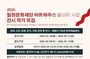 코리아타임뉴스 이아름 기자 | (재)철원문화재단은 2026년 아트하우스 전시에 참여할 작가를 오는 4월 8일부터 17일까지 공개 모집한다. 이번 공모는 단순히 작품을 전시하는 형식을 넘어, 전시 공간에서의 관람 경험, 체험 프로그램, 도슨트 운영까지 작가와 함께 만들어가는 전시로 운영될 예정이다. 아트하우스는 지역 주민과 방문객이 일상 속에서 자연스럽게 예술을 경험할 수 있도록 조성된 문화예술 공간으로, 2026년에는 공모전시 4회와 기획전시 2회를 운영할 예정이며, 지난해에는 공모전시 3회와 대관전시 3회를 진행하는 등 다양한 전시와 체험 프로그램을 통해 생활 밀착형 예술 향유 기회를 꾸준히 제공해왔다. 이번 공모를 통해 선정된 작가는 전시 기간 동안 작품 설치 및 철수, 공간 구성, 관람 동선 기획, 관람객 대상 체험 프로그램(해당 시), 도슨트 운영 협력, 홍보 협조 등 전시 전반의 운영 과정에 참여하게 된다. 철원문화재단 박현웅 본부장은 “이번 공모는 전시 결과물뿐 아니라 전시가 운영되는 전 과정을 작가와 함께 만들어가는 협력 프로젝트로, 작가의 창작활동을 적극 지원하는 데 중점을 두고 있