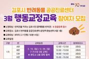 코리아타임뉴스 기동취재팀 | 김포시는 반려동물 공공진료센터 연계 프로그램인 ‘반려견 행동교정교육’ 제1기 참여자를 모집한다고 밝혔다. 해당 교육은 반려견의 문제행동을 개선하고 이웃과 상생하는 건강한 반려문화를 조성하기 위해 지난해부터 운영해 온 프로그램이다. 시민들의 높은 관심과 호응에 힘입어 올해 보다 체계적이고 내실 있는 교육과 맞춤형 지도를 이어갈 예정이며, 교육은 연간 총6기, 12회(기수당 2회)로 나뉘어 운영될 계획이다. 1기 교육은 3월 15일, 3월 29일 총2회에 걸쳐 진행된다. 1회차는 실내교육으로 가정에서 나타나는 습관적 문제행동의 원인을 분석하고 맞춤 교정훈련을 실시하며, 2회차는 실외교육으로 1회차 훈련 행동 점검 및 산책 방법, 사회화 교육을 중심으로 운영할 계획이다. 특히 이번 교육은 '개는 훌륭하다', '동물농장' 등 다수 프로그램에서 반려견 행동 교정을 지도해 온 ‘권혁필 행동교정사’와 함께한다. 반려견의 습관적 행동의 원인을 면밀히 분석해 생활 습관은 물론 양육 환경까지 개선할 수 있도록 2:1 맞춤형으로 진행된다. 반려견의 행동 교정이 필요한 김포시민이라면 누구나