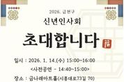코리아타임뉴스 노승선 기자 | 금천구는 오는 14일 오후 3시 금나래아트홀에서 병오년(丙午年, 붉은 말의 해) 새해를 맞아 금천의 도약과 번영을 기원하는 ‘2026년 금천구 신년인사회’를 개최한다고 밝혔다. 이번 신년인사회는 새해를 여는 첫 공식 행사다. 구민 600여 명이 참석해 민선 7·8기를 함께 걸어온 서로에게 감사의 마음을 전하고, 2026년 한 단계 도약을 향한 공동의 의지를 다지는 자리로 진행된다. 금천뮤즈앙상블오케스트라의 사전공연, 국립전통예술고등학교의 오프닝 공연을 시작으로 ▲유성훈 금천구청장 신년사 ▲새해 소망을 담은 주민 인터뷰 영상 상영 ▲주요 내빈 새해덕담 및 큰절 ▲금천구립시니어합창단의 축하공연 등으로 이어진다. 구는 구민이 주인공이 되는 참여형 공연과 품격 있는 의례를 통해 공동체 연대와 화합을 보여주는 자리가 될 것이라고 설명했다. 특히 유성훈 금천구청장은 신년사를 통해 저성장 국면 속에서도 기회를 만들어 온 금천구의 발자취를 돌아본다. 민선 7·8기 동안 이룬 생활SOC·안전·돌봄·미래교육 등 82개 인프라 확충 성과를 공유하고, 함께 변화를 이루어 온 구민에게 감사