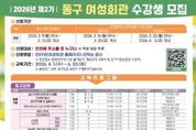 코리아타임뉴스 이아름 기자 | 인천 동구는 오는 3월 9일~4월 3일까지‘2026년 제2기 동구 여성회관’ 수강생을 모집한다고 밝혔다. 오는 4월 1일부터 3개월 과정으로 진행되는 제2기 정규강좌 프로그램은 ▲실내인테리어(도배 및 필름) ▲등라탄공예 ▲요리·공예 프로그램 등 총 26개 과정으로 운영되며, 직장인을 위한 바리스타 2급 야간반 및 퇴근 후 ‘뚝딱 반찬’ 등 야간 강좌도 운영될 예정이다. 또한 브런치 만들기 강좌를 1개월 단기 특강으로 운영해 주민들이 부담 없이 참여할 수 있도록 구성했으며, 일일 무료 특강으로는 ▲핸드드립&퓨전떡 만들기 ▲딸기도지마롤케이크 만들기 ▲패션도식화(옷그리기) 특강이 준비된다. 수강 신청은 인천시 거주자를 대상(동구 주민 우선)으로 여성회관 홈페이지를 통해 선착순 접수하며 온라인 접수에 어려움을 겪는 자, 동구사랑상품권, 평생교육 바우처 사용자는 여성회관으로 방문하여 신청할 수 있다. 김찬진 동구청장은“여성회관 교육 프로그램이 주민들의 자기계발과 역량강화에 실질적인 도움이 되기를 희망한다”며 “여성뿐 아니라 남성 수강생도 많은 문의와 참여를 바란다”고 말했다.