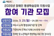 코리아타임뉴스 전남취재본부 | 여수시는 지역 내 장애인의 평생학습권 보장과 자립생활 능력 강화를 위해 '2026년 장애인 평생학습강좌 지원사업'에 참여할 기관·단체를 모집한다. 이번 사업은 장애인과 느린학습자를 대상으로 평생학습 프로그램 운영을 지원해 지속적인 배움과 사회참여 기회를 확대하고 비장애인과 함께하는 학습 환경을 조성해 장애 인식 개선과 지역사회 소통·협력 문화 확산에도 기여하고자 한다. 사업 운영 기간은 4월부터 10월까지이며, 공고는 3월 9일부터 24일까지 16일간 진행된다. 신청 접수는 3월 23일부터 24일까지 이틀간 받는다. 모집 대상은 여수시 소재 평생교육기관 및 단체로, 총 5개 기관·단체를 선정해 1개소당 최대 240만 원의 강사수당을 지원할 계획이다. 지원 분야는 ▲기술 습득을 통한 직업역량 강화 프로그램 ▲자아실현을 위한 문화예술 프로그램 ▲소통·협력을 위한 사회활동 참여 프로그램 등이다. 특히 장애인과 비장애인 간 교류를 통한 장애인식 개선과 자립생활 역량을 높이는 데 중점을 둔다. 신청은 방문 접수로 진행하며, 지원서 양식은 여수시 누리집 공고문에서 확