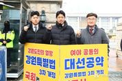 코리아타임뉴스 김택호 기자 | 강원특별자치도의회 기획행정위원회는 11월 27일 여의도 국회 앞에서 강원특별자치도 설치 및 미래산업글로벌도시 조성을 위한 특별법(강원특별법) 3차 개정안의 조속한 처리를 촉구하는 릴레이 1인 시위를 이어갔다. 기획행정위원회는 이날 시위를 통해 강원특별법 3차 개정안이 지역 발전의 제도적 기반이자 도민의 오랜 염원을 담은 법안임을 강조하며, 국회가 조속히 심사에 착수해 실질적인 논의가 이뤄질 것을 촉구했다. 문관현 위원장은 “강원특별법 개정은 지역의 미래와 직결된 300만 도민의 절실한 요구”라며 “국회가 도민의 기대에 부응해 책임 있는 자세로 조속히 논의를 마무리해야 한다”고 말했다. 한편, 기획행정위원회는 강원특별법 3차 개정안이 정기국회 기간 내 처리될 수 있도록 관계 부서와 긴밀히 협력하고, 법안 통과를 위해 현실적인 방안을 지속적으로 모색해 나갈 계획이다.