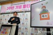 코리아타임뉴스 윤경수 기자 | 박강수 마포구청장은 11월 27일 오후 4시, ‘마포 발달장애인 문화창작소(양화로 178-5)’ 개관 3주년 기념 파티에 참석해 이용인·가족·운영 관계자들과 따뜻한 축하의 시간을 가졌다. 이번 행사는 서울장애인부모연대 마포지회가 주최·주관한 것으로, 그동안 문화창작소를 이용해 온 발달장애인들의 활동 성과를 함께 나누기 위해 마련됐다. 마포 발달장애인 문화창작소는 훌라, 클라이밍, 요리 교실 등 다양한 프로그램을 운영하며 발달장애인의 생활 능력 향상과 문화 활동 참여 확대를 위해 꾸준히 노력해오고 있다. 행사는 개회 선언을 시작으로, 문화창작소가 지난 3년 동안 만들어 온 성장의 발자취를 담은 성과 영상 상영과 박강수 마포구청장의 축사, 그리고 듀엣 바이올린 축하 공연이 이어지며 잔잔한 감동과 따뜻한 응원이 흐르는 시간으로 채워졌다. 이어진 족자 및 감사장 전달식에서는 문화창작소의 운영을 위해 보이지 않는 곳에서 힘써온 지도자에게 감사의 마음을 전하며 서로를 격려하는 뜻깊은 순간이 마련됐다. 마지막으로 3주년을 기념하는 떡케이크 커팅이 진행되자 현장에는 축하