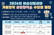코리아타임뉴스 전남취재본부 | 여수시는 12월 29일부터 2026년 1월 7일까지 ‘2026년 이순신도서관 겨울방학 상상창작소’ 수강생을 선착순 모집한다. 이번 프로그램은 관내 초등학생을 대상으로 하는 7개 강좌로 구성되며, 2026년 1월 12일부터 2월 5일까지 운영된다. 개설 강좌는 ▲어린이 로봇 체험(비누로봇) ▲인공지능코딩(알버트로봇) ▲코딩로봇 만들기(프로보익사이팅) ▲메이커교육(스마트시티 만들기) ▲메타버스와 로블록스 ▲VR체험 ▲드론체험 등 7개 강좌다. 강좌별 10명 내외 수강생을 선착순으로 모집하며, 참가 희망자는 여수시립도서관 누리집에서 본인 또는 보호자가 신청하면 된다. 기타 자세한 사항은 이순신도서관으로 문의하면 된다. 시 관계자는 “겨울방학을 맞아 초등학생들이 도서관을 통해 다양한 인공지능 콘텐츠를 접할 수 있도록 프로그램을 마련했다”며 “어린이들의 많은 신청을 바란다”고 말했다.